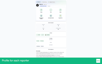 HeyJared.ai to rozszerzenie do przeglądarki Chrome, które umożliwia szybkie pozyskiwanie informacji o reporterach i ich publikacjach bez konieczności opuszczania strony. Dzięki prostemu kliknięciu w ikonę HeyJared.ai, użytkownicy mogą uzyskać dostęp do profili reporterów, informacji o ich outletach oraz kontaktów, co przyspiesza proces nawiązywania współpracy. Rozszerzenie oferuje również bogate profile, które zawierają statystyki dotyczące publikacji, tematyki oraz wzorców publikacyjnych w przejrzystym układzie kart.